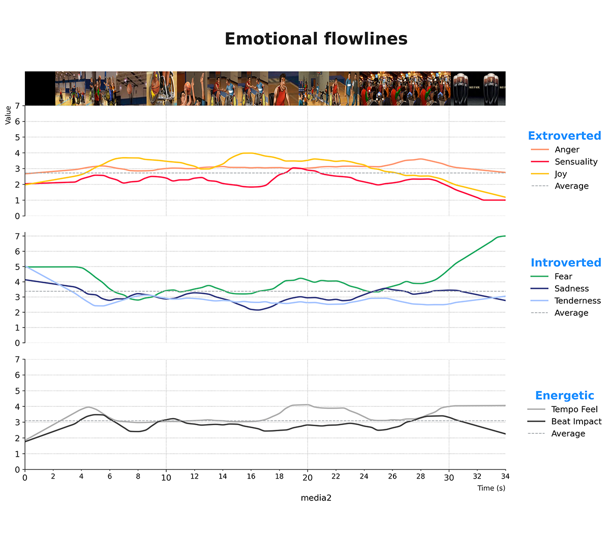 Amplifai’s Emotional Flowlines provide a second-by-second analysis of the moods and emotions represented in the audio of the advertisement.